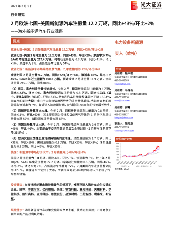 【光大证券】【20210305】20210305-光大证券-海外新能源汽车行业观察:2月欧洲七国+美国新能源汽车注册量12.2万辆,同比+43% 环比+2%-10页 行业研究