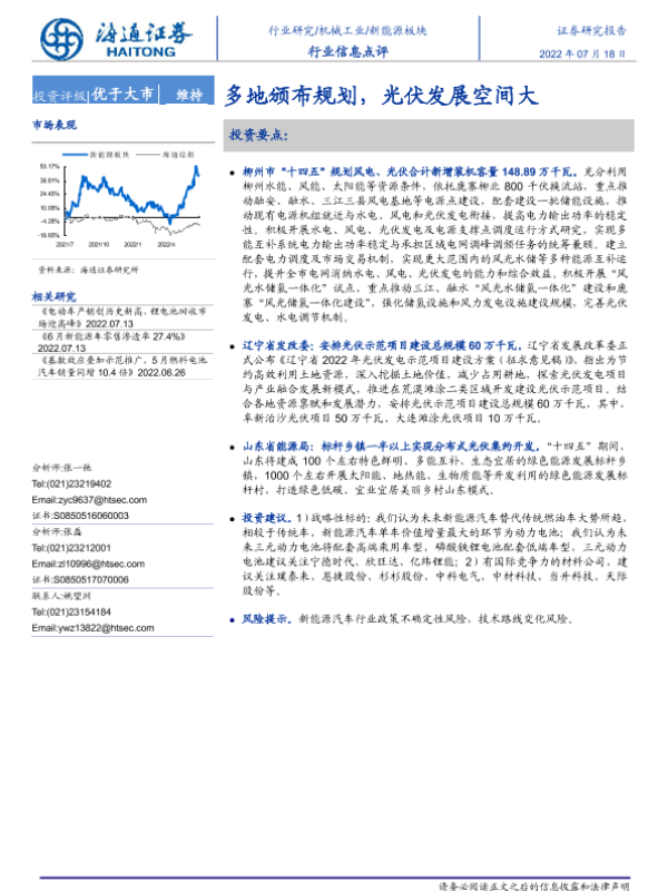 【海通证券】【20220718】20220718-海通证券-新能源板块行业信息点评:多地颁布规划,光伏发展空间大-2页 行业研究