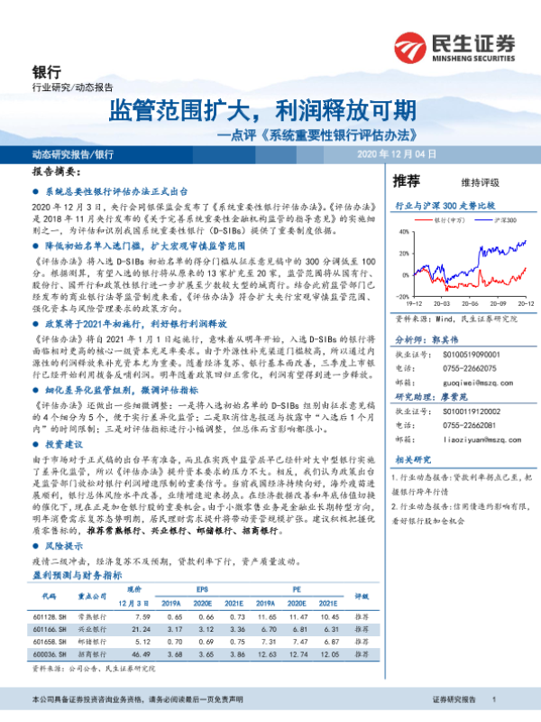 【民生证券】【20201204】银行:点评《系统重要性银行评估办法》:监管范围扩大,利润释放可期-8页 行业研究
