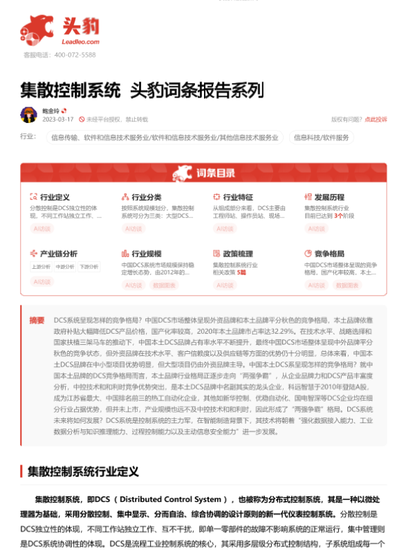 【头豹研究院】【20230626】2023年中国集散控制系统行业词条报告-17页 行业研究