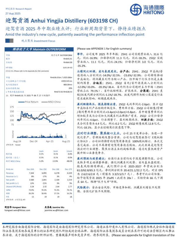 【海通国际】【202508】迎驾贡酒(603198)2025年中期业绩点评:行业新周期背景下,静待业绩拐点-12页 证券期货研究报告