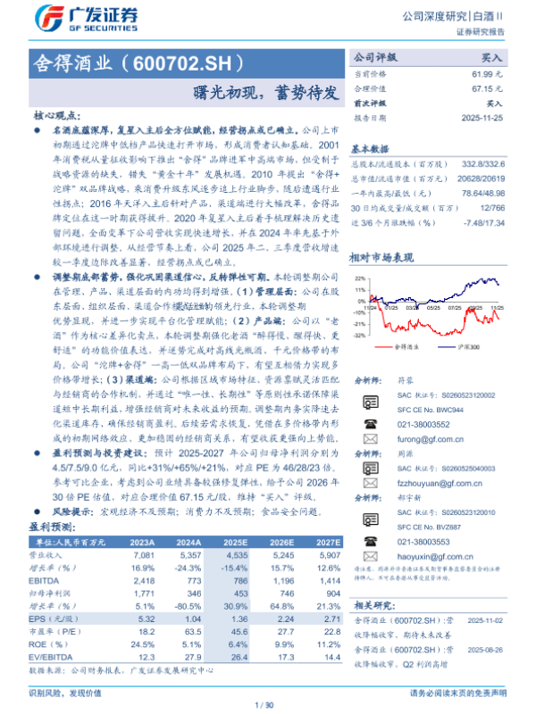 【广发证券】【202511】舍得酒业(600702.SH)曙光初现,蓄势待发-30页 证券期货研究报告