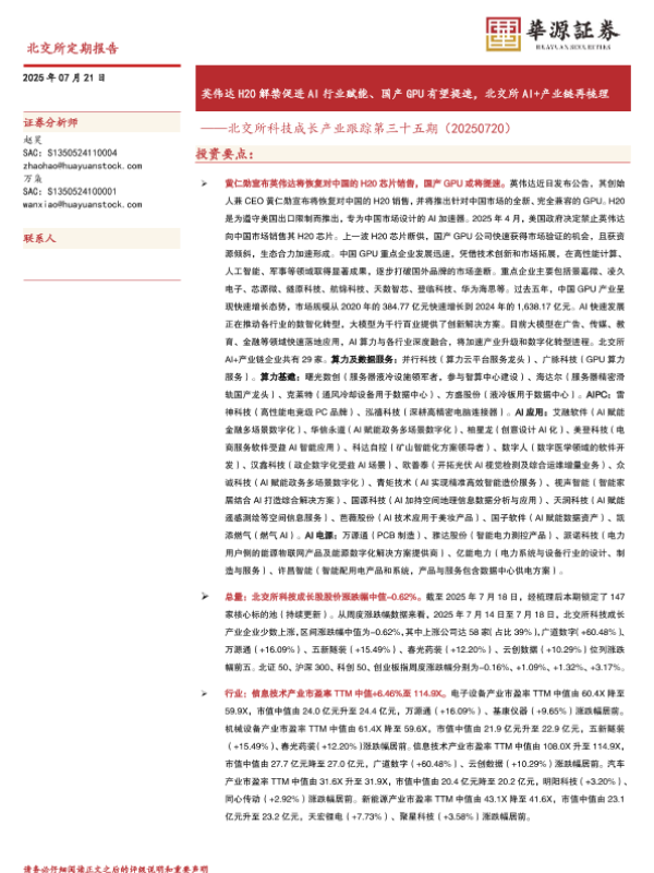 【华源证券】【20250721】北交所科技成长产业跟踪第三十五期:英伟达H20解禁促进AI行业赋能、国产GPU有望提速,北交所AI+产业链再梳理-22页 行业研究