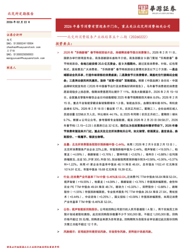 【华源证券】【202602】2026年春节消费有望迎来开门红,重点关注北交所消费相关公司-16页 证券期货研究报告