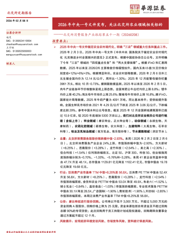 【华源证券】【202602】2026年中央一号文件发布,关注北交所农业领域相关标的-14页 证券期货研究报告