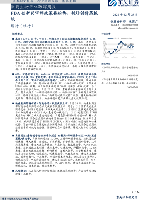 【东吴证券】【202602】FDA创新药审评政策再松绑,利好创新药板块-24页 证券期货研究报告