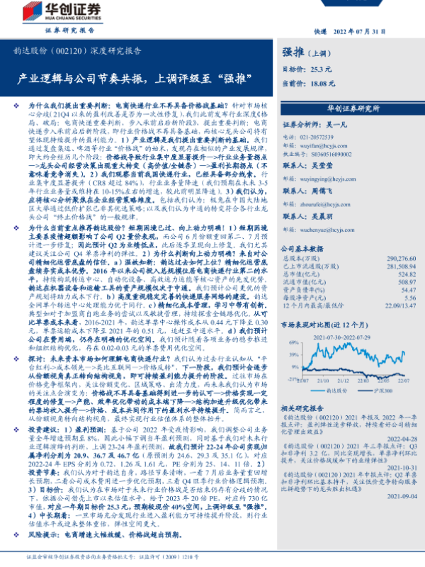 【华创证券】【20220731】20220731-华创证券-韵达股份-002120.SZ-深度研究报告:产业逻辑与公司节奏共振,上调评级至“强推”-32页 行业研究