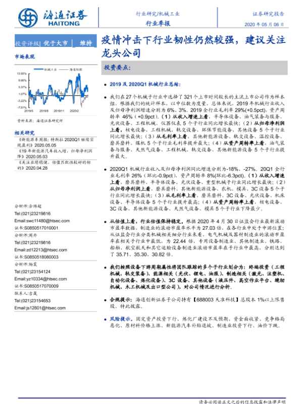 【海通证券】【20200506】20200506-海通证券-机械工业行业季报:疫情冲击下行业韧性仍然较强,建议关注龙头公司-33页 行业研究