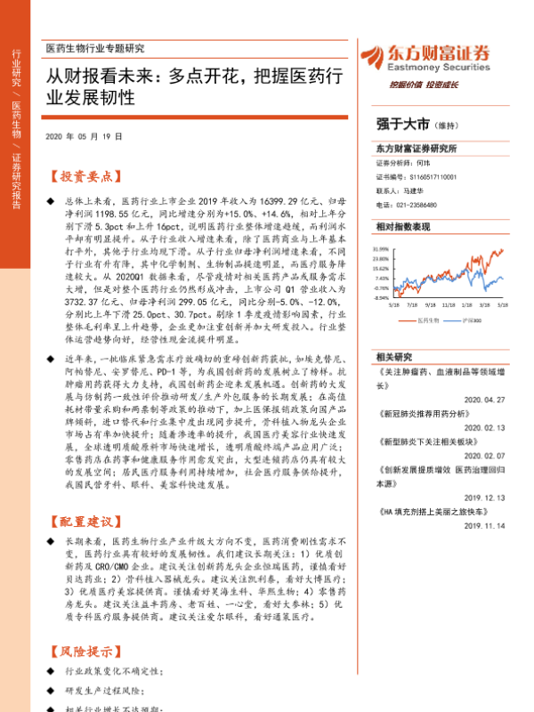 【东方财富证券】【20200519】从财报看未来:多点开花,把握医药行业发展韧性-21页 行业研究