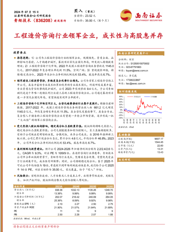 【西南证券】【20240715】工程造价咨询行业领军企业,成长性与高股息并存-29页 行业研究