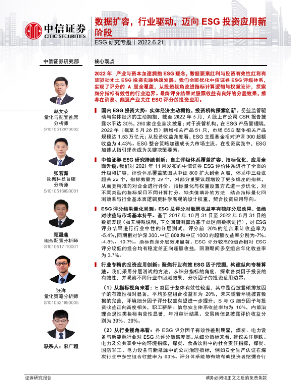 【中信证券】【20220621】ESG研究专题:数据扩容,行业驱动,迈向ESG投资应用新阶段-23页 行业研究