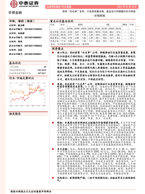 【中泰证券】【20210531】券商“白名单”发布,行业高质量发展,基金发行回暖看好东方财富-11页 行业研究