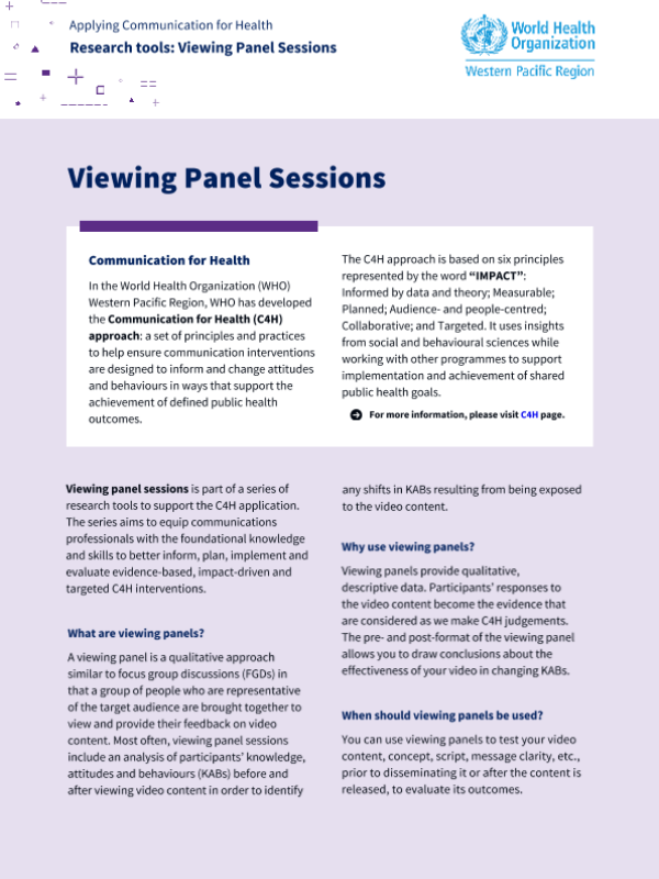 【World Health Organization】【2026】Applying Communication for Health Research tools Viewing Panel Sessions-11页 指南