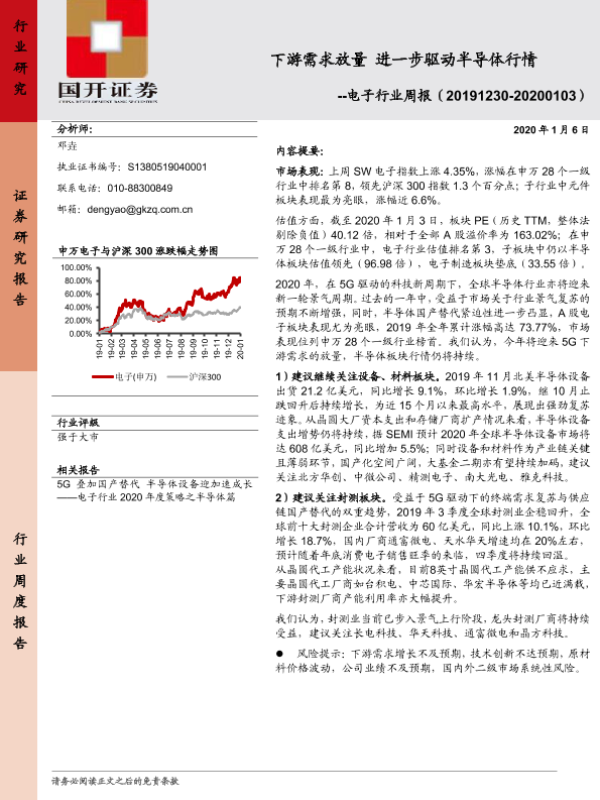 【国开证券】【20200106】电子行业周报:下游需求放量 进一步驱动半导体行情-11页 行业研究