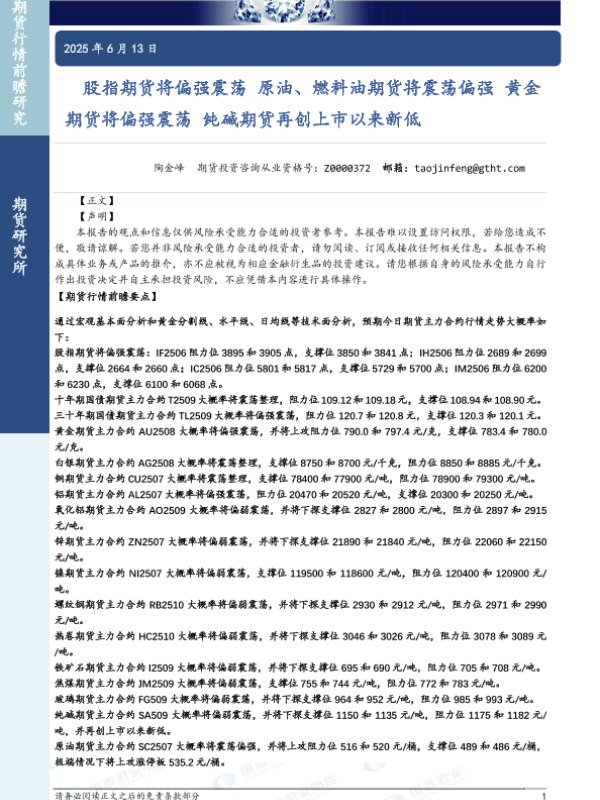 【国泰君安期货】【20250613】股指期货将偏强震荡_原油_燃料油期货将震荡偏强_黄金期货将偏强震荡_纯碱期货再创上市以来新低-33页 证券期货研究报告
