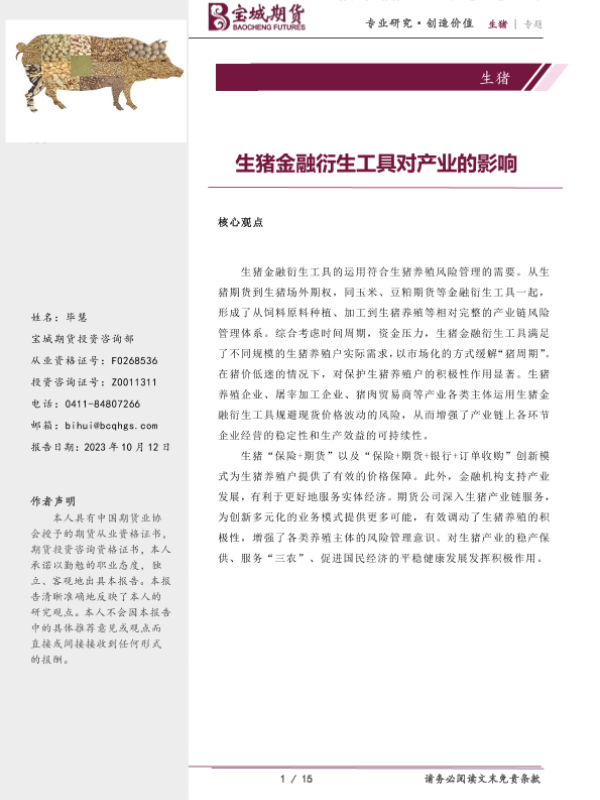 【宝城期货】【20231013】生猪金融衍生工具对产业的影响-15页 行业研究