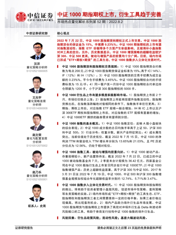 【中信证券】【20220802】市场热点量化解析系列第52期:中证1000期指期权上市,衍生工具趋于完善-24页 行业研究