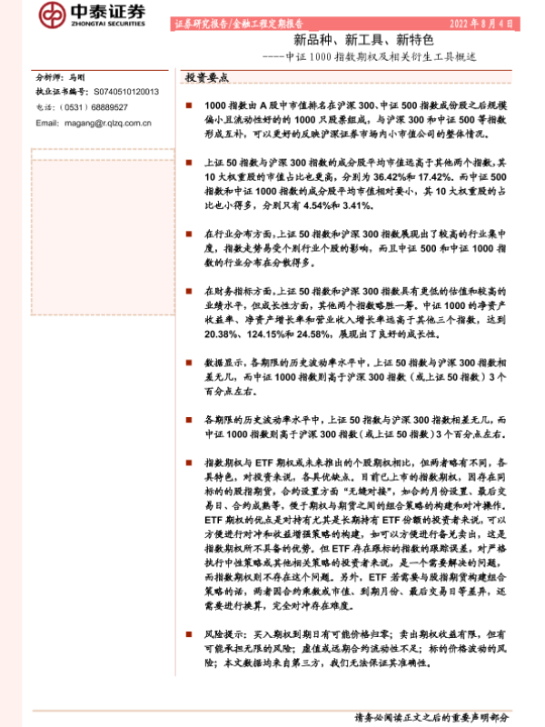 【中泰证券】【20220804】中证1000指数期权及相关衍生工具概述:新品种、新工具、新特色-15页 行业研究