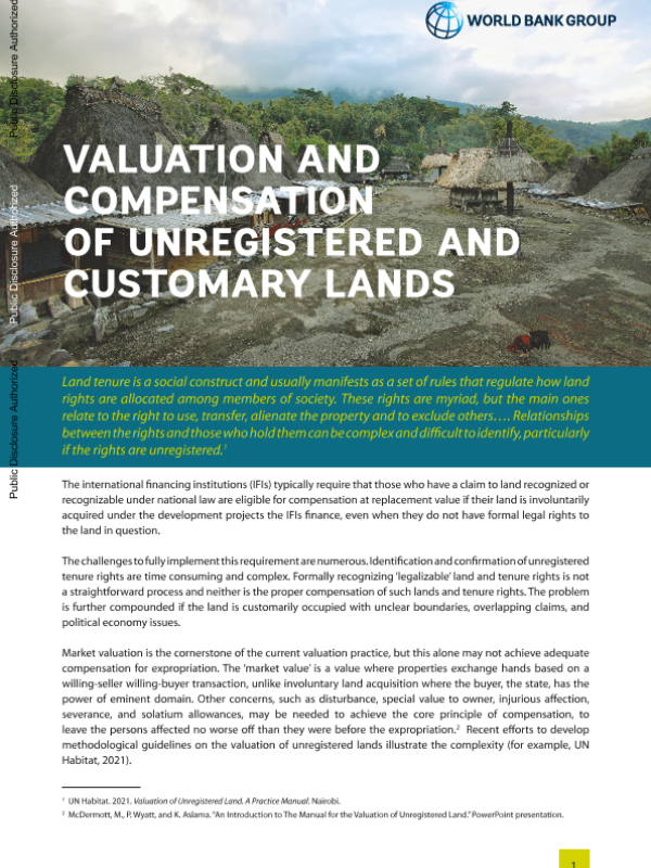 【世界银行】【2024】Valuation and Compensation of Unregistered and Customary Lands-6页 指南