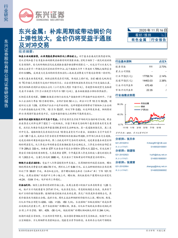 【东兴证券】【20201116】东兴金属:补库周期或带动铜价向上弹性放大,金价仍将受益于通胀及对冲交易-25页 行业研究