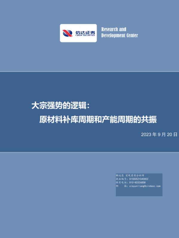 【信达证券】【20230920】大宗强势的逻辑:原材料补库周期和产能周期的共振-26页 宏观策略
