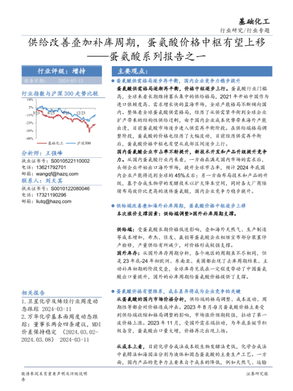 【华安证券】【20240313】基础化工行业蛋氨酸系列报告之一:供给改善叠加补库周期,蛋氨酸价格中枢有望上移-26页 行业研究