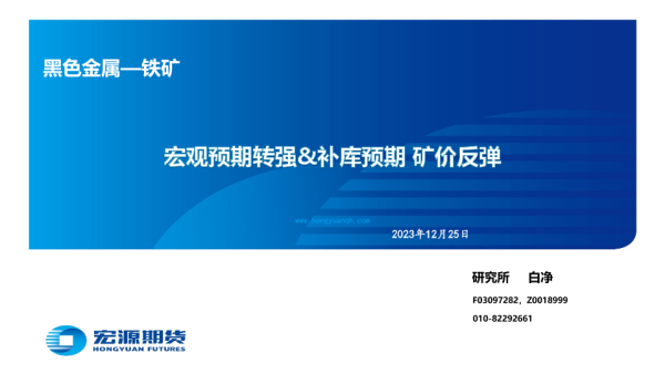 【宏源期货】【20231225】黑色金属—铁矿:宏观预期转强&补库预期 矿价反弹-29页 行业研究