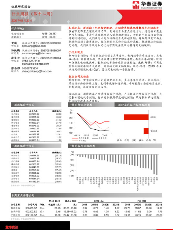 【华泰证券】【20200322】电力设备新能源行业周报(第十二周)-17页 行业研究