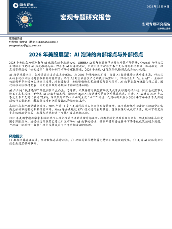 【国金证券】【202512】2026年美股展望:AI泡沫的内部熔点与外部拐点-15页 证券期货研究报告