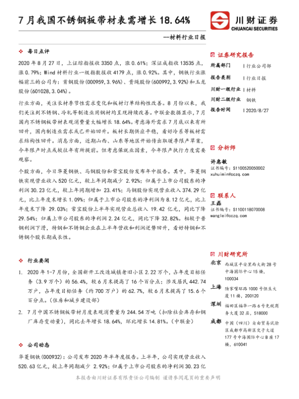【川财证券】【20200827】7月我国不锈钢板带材表需增长18.64%-3页 行业研究