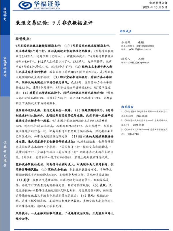 【华福证券】【20241005】衰退交易证伪:9月非农数据点评-12页 宏观策略