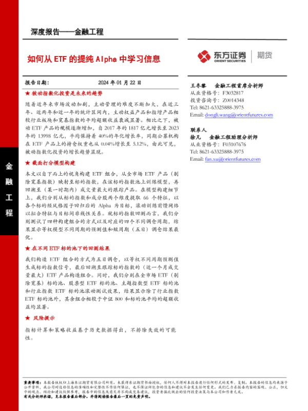 【东证期货】【20240122】金融工程深度报告:如何从ETF的提纯Alpha中学习信息-20页 行业研究