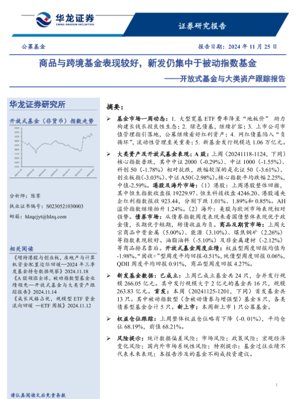 【华龙证券】【20241125】开放式基金与大类资产跟踪报告:商品与跨境基金表现较好,新发仍集中于被动指数基金-12页 行业研究