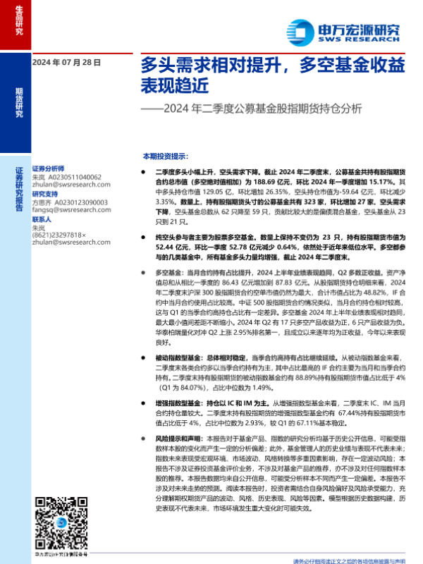 【申万宏源】【20240728】2024年二季度公募基金股指期货持仓分析:多头需求相对提升,多空基金收益表现趋近-13页 行业研究