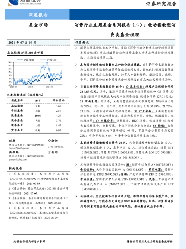 【财信证券】【20210706】消费行业主题基金系列报告(二):被动指数型消费类基金梳理-19页 行业研究