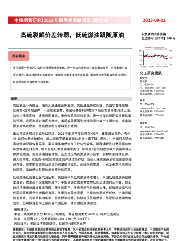 【中信期货】【20230922】2023年四季度策略报告(燃料油):高硫裂解价差转弱,低硫燃油跟随原油-24页 行业研究