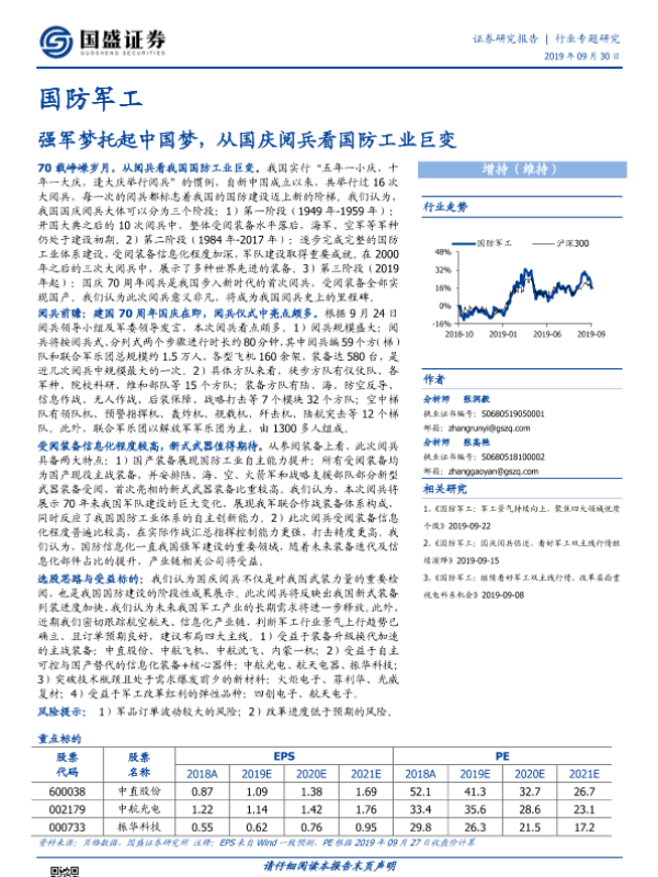 【国盛证券】【20190930】国防军工行业专题研究:强军梦托起中国梦,从国庆阅兵看国防工业巨变-12页 行业研究