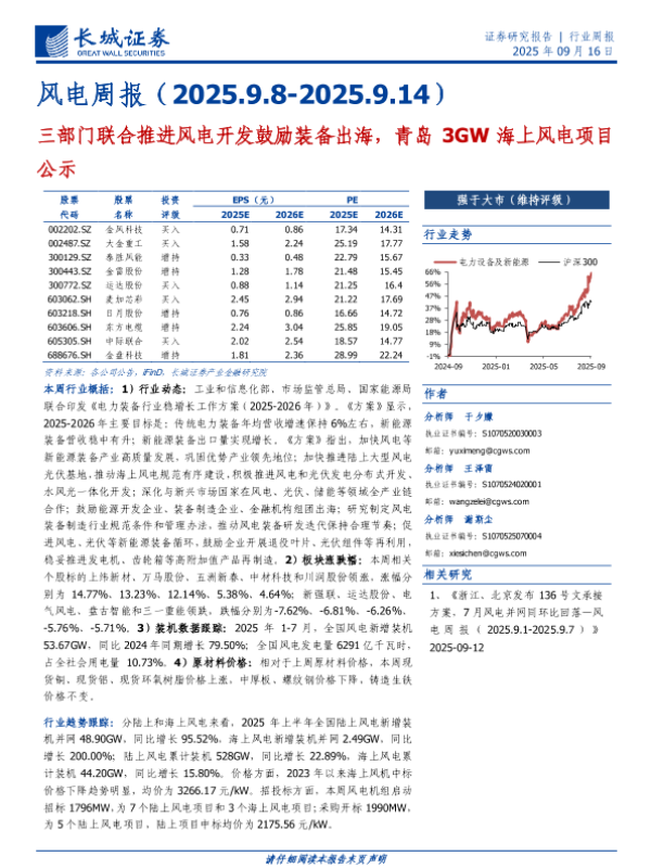 【长城证券】【202509】风电周报(2025.9.8-2025.9.14)-13页 证券期货研究报告