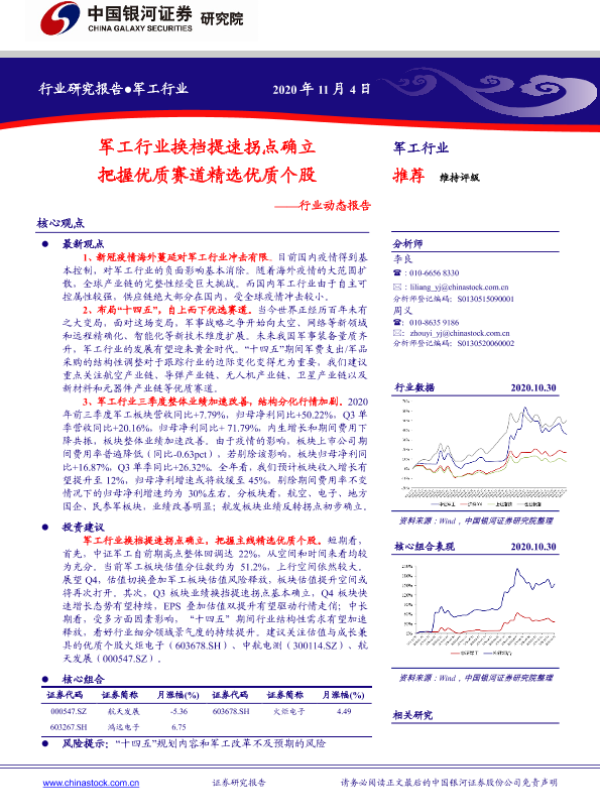 【银河证券】【20201104】军工行业换档提速拐点确立 把握优质赛道精选优质个股-40页 行业研究