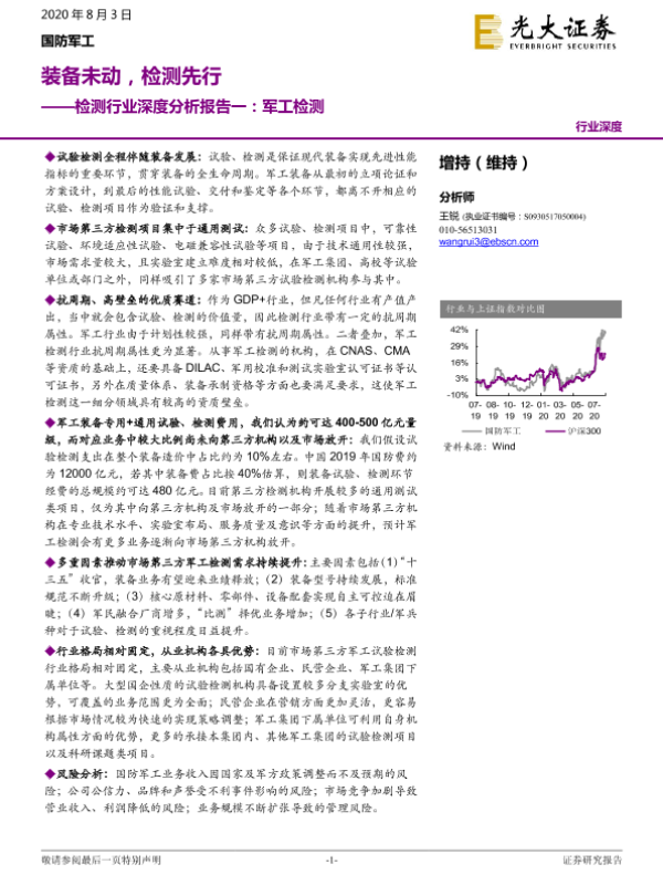 【光大证券】【20200803】检测行业深度分析报告一:军工检测:装备未动,检测先行-14页 行业研究