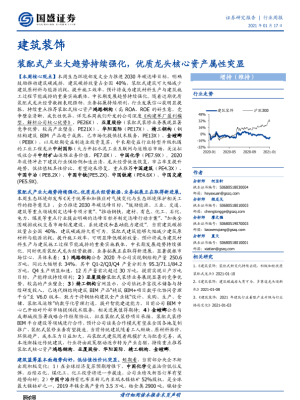 【国盛证券】【20210117】建筑装饰行业周报:装配式产业大趋势持续强化,优质龙头核心资产属性突显-18页 行业研究
