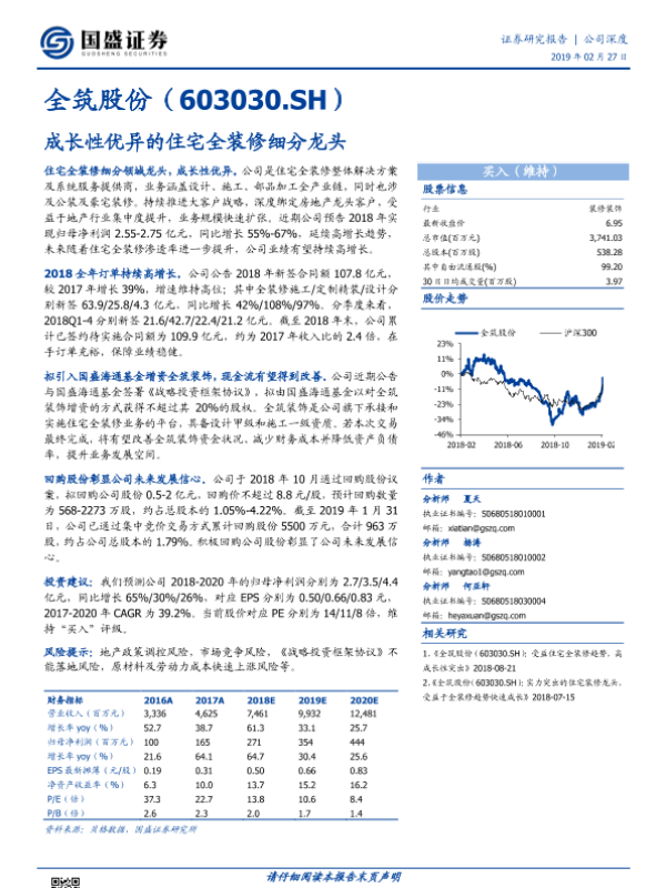 【国盛证券】【20190227】全筑股份(603030.SH)成长性优异的住宅全装修细分龙头-20页 行业研究