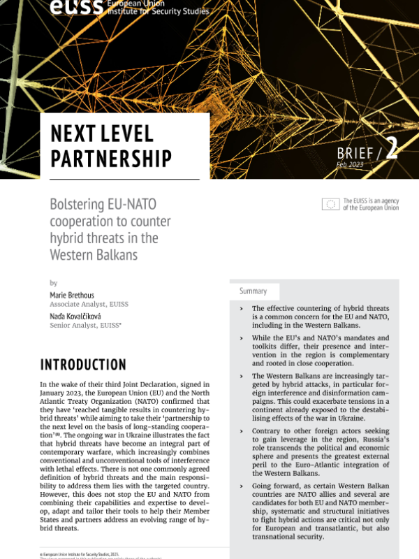 【欧洲安全研究所 (European Union Institute for Security Studies)】【20230201】下一级伙伴关系 - 加强欧盟合作,以应对西巴尔干地区的混合威胁-8页 行业研究