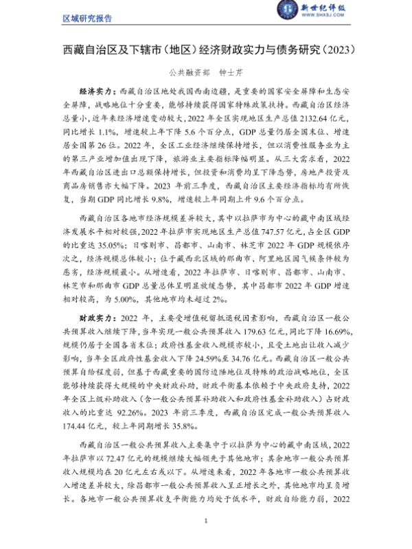 【新世纪评级】【2023】西藏自治区及下辖市(地区)经济财政实力与债务研究(2023)-14页 行业研究