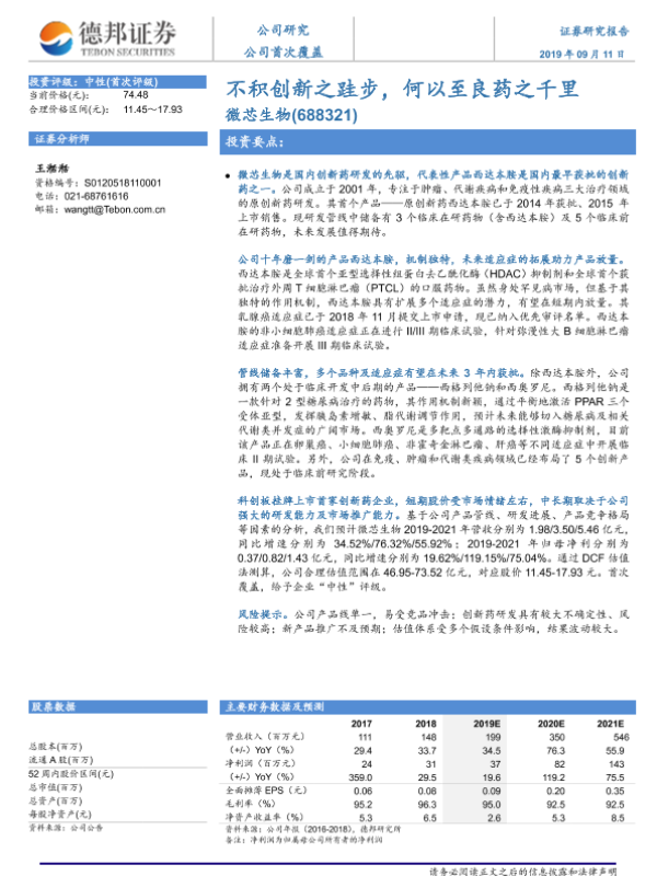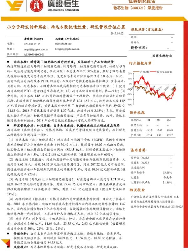 【广证恒生】【20190802】20190802-广证恒生证券研究所-微芯生物-688321.SH-小分子研发创新药企,西达本胺快速放量,研发管线价值凸显-27页 行业研究