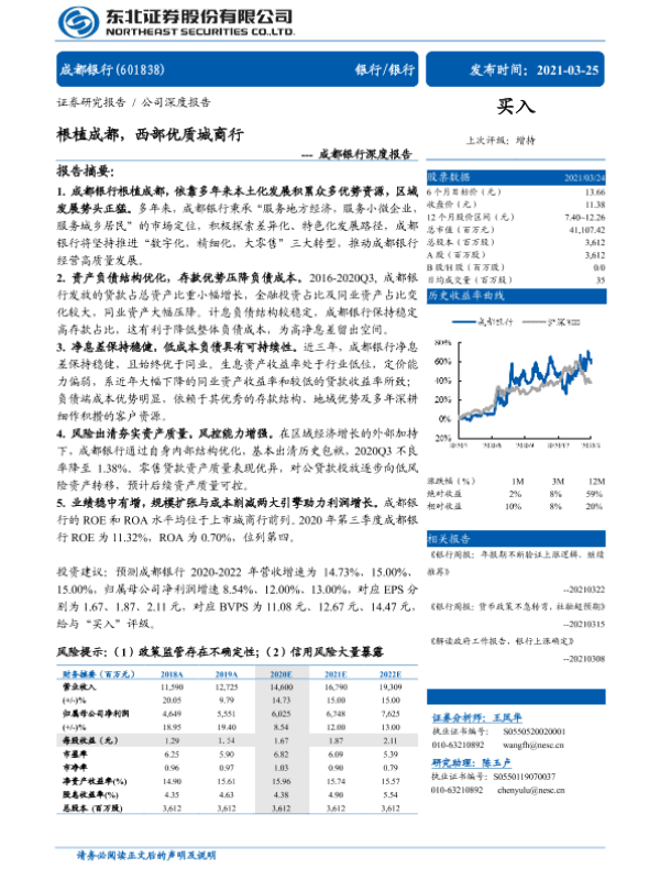 【东北证券】【20210325】成都银行深度报告:根植成都,西部优质城商行-31页 行业研究
