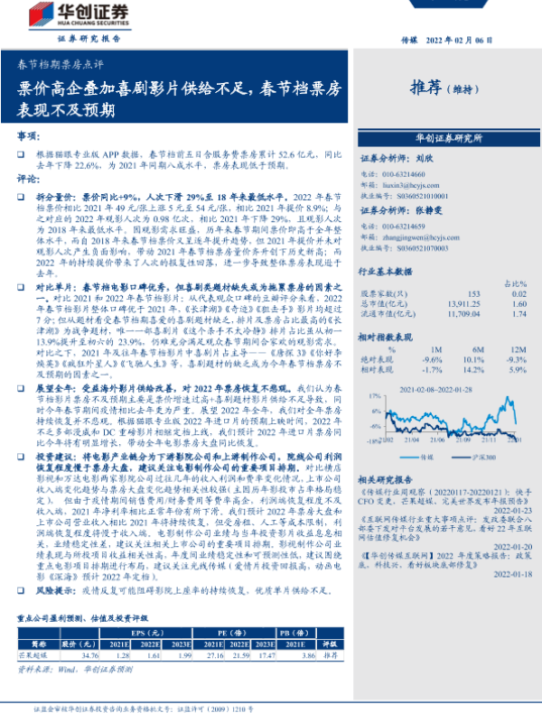 【华创证券】【20220206】春节档期票房点评-11页 行业研究