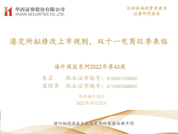 【华西证券】【20221023】海外周报系列2022年第43周:港交所拟修改上市规则,双十一电商旺季来临-47页 行业研究