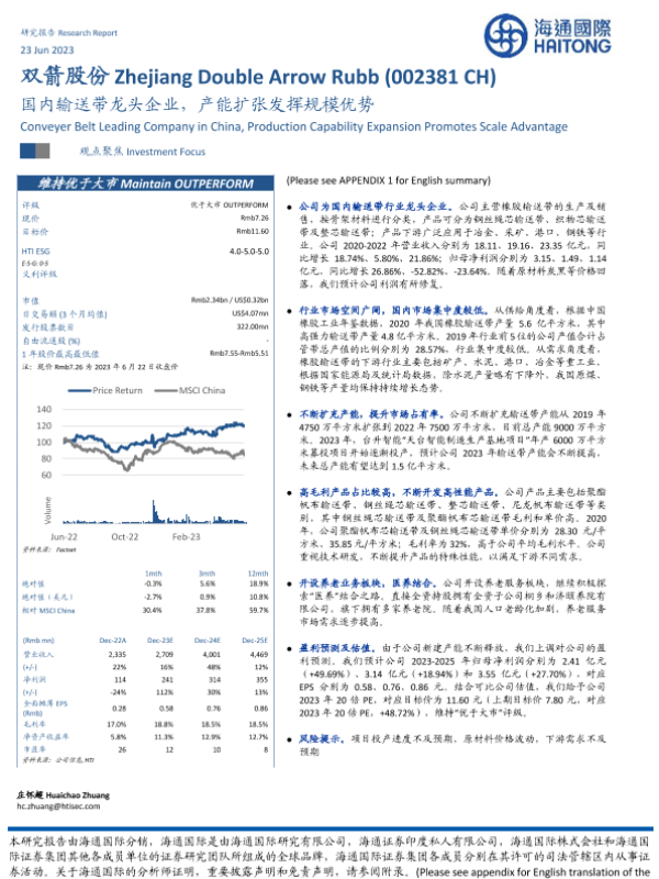 【海通国际】【20230623】国内输送带龙头企业,产能扩张发挥规模优势-22页 行业研究