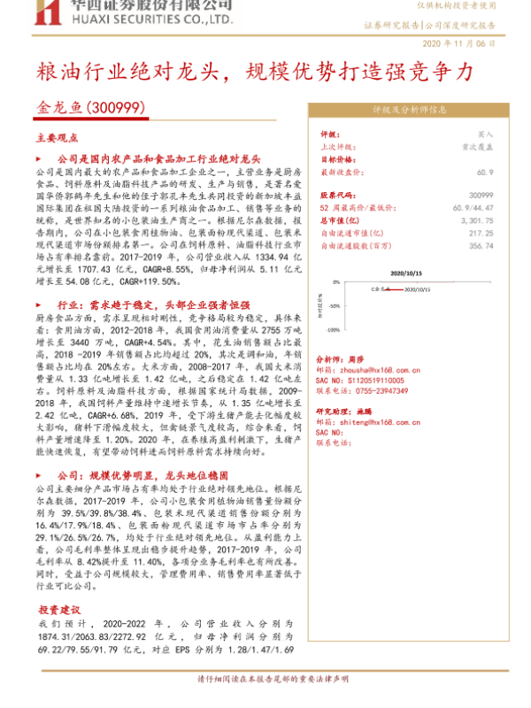 【华西证券】【20201106】20201106-华西证券-金龙鱼-300999.SZ-粮油行业绝对龙头,规模优势打造强竞争力-23页 行业研究